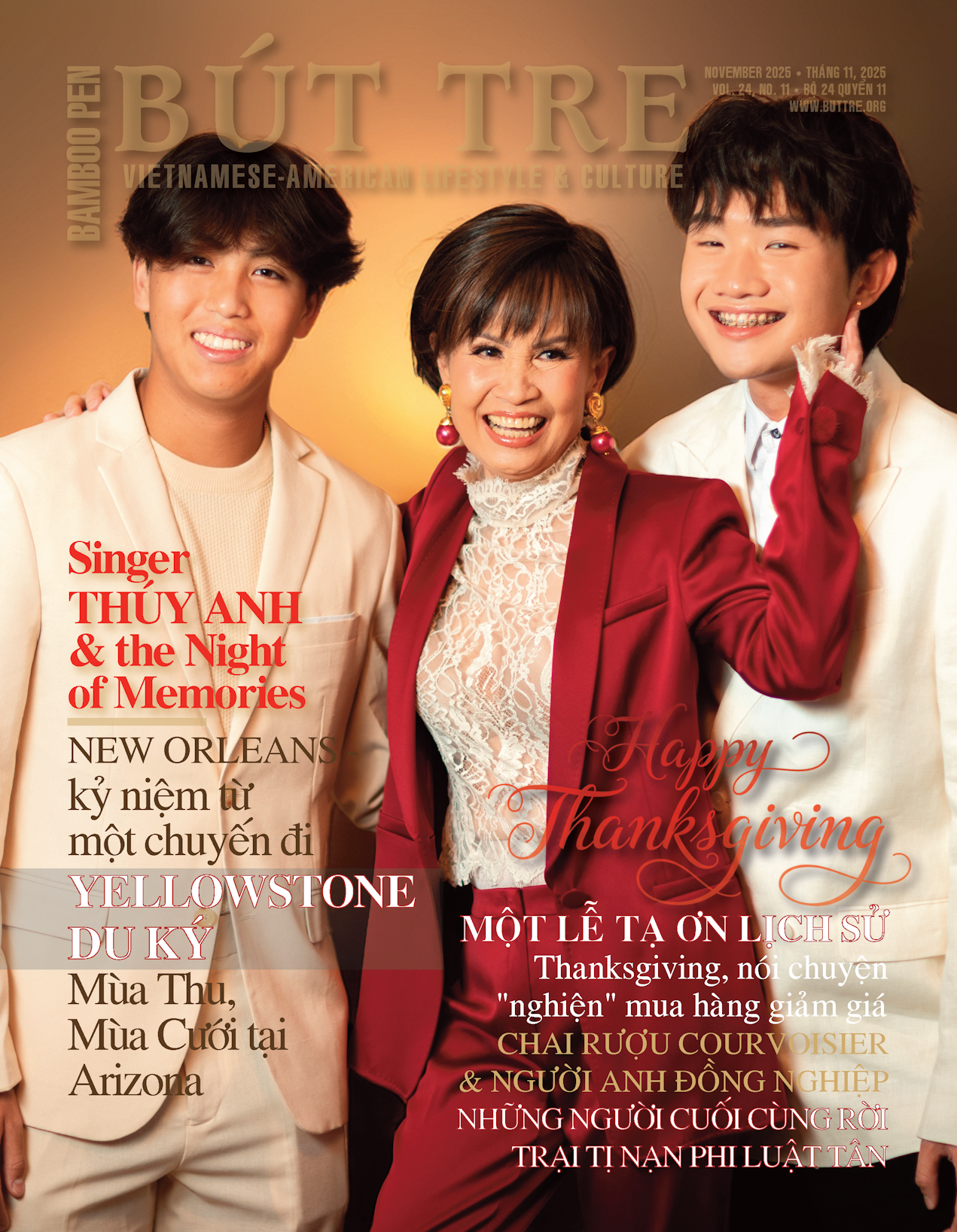 Bút Tre rất vinh hạnh được giới thiệu nữ ca sĩ danh tiếng Thúy Anh trên trang bìa ấn phẩm mới nhất này, và BBT rất vui được tham dự "Đêm nhạc Chốn Xưa" của cô tại California vào ngày 22 tháng 11 năm 2025. Cùng xuất hiện trên ảnh bìa là hai em Ethan Trần (trái) và Henry Ngô (phải). Ảnh do Thư Huyền chụp.